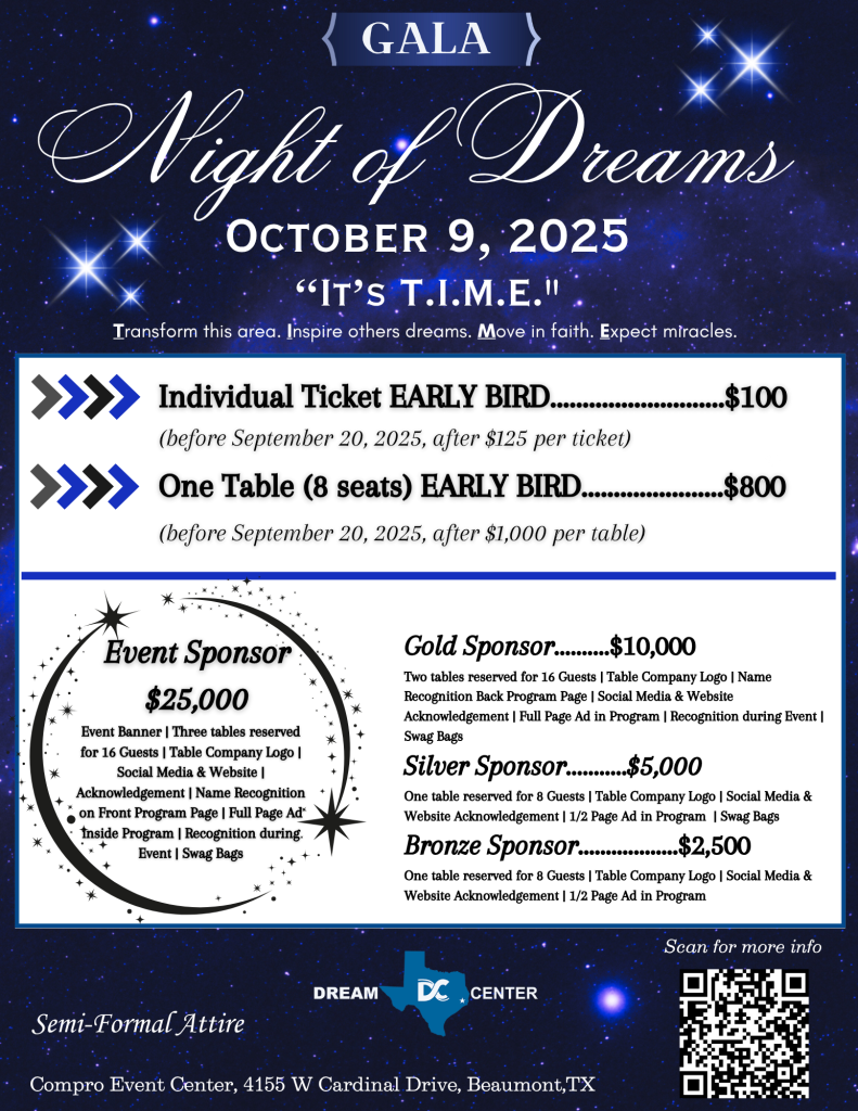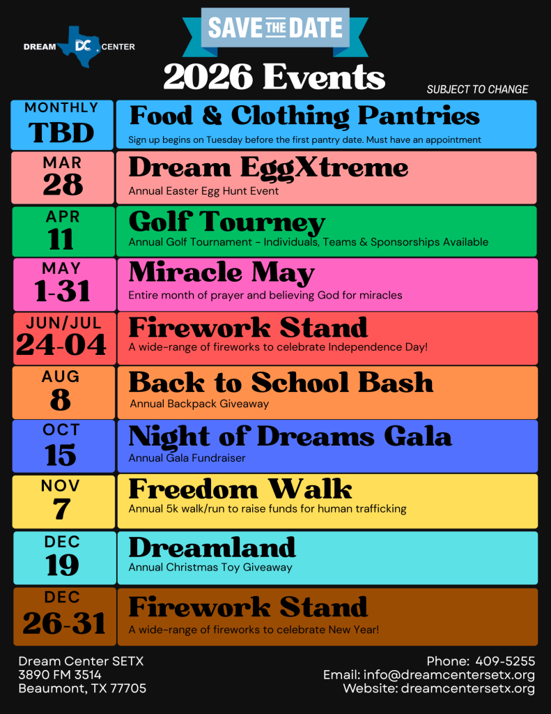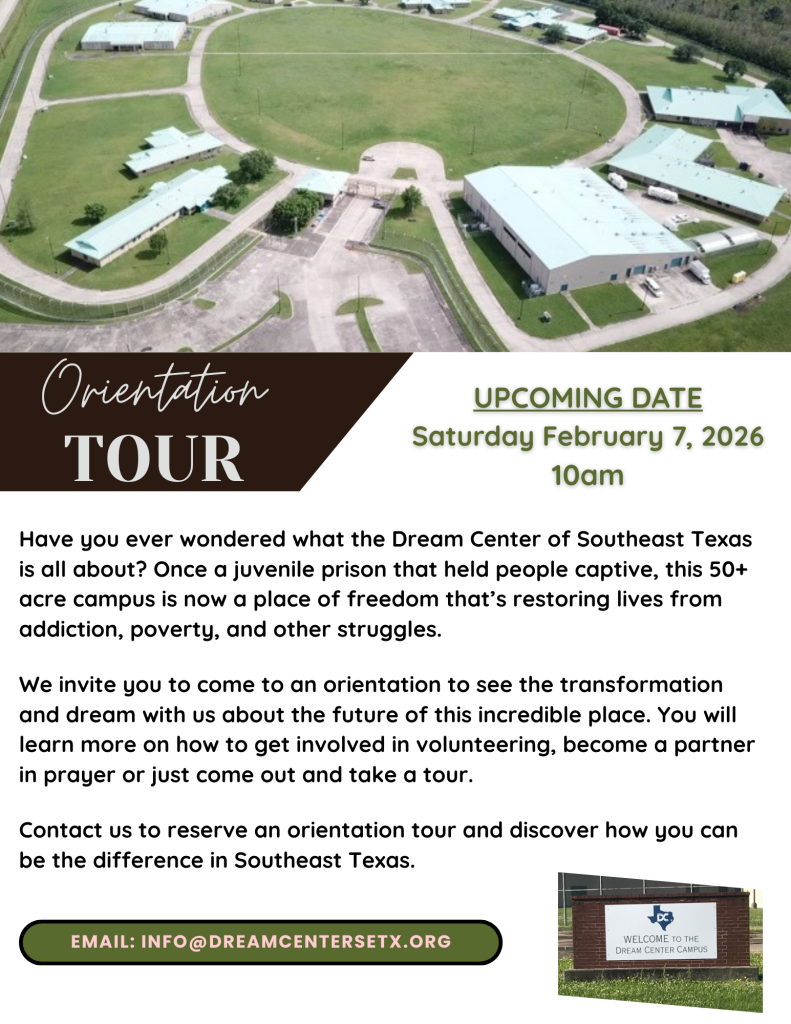 You can learn more about the vision of the Dream Center by attending an Orientation Tour. Call (409) 234-5255 for dates & times.