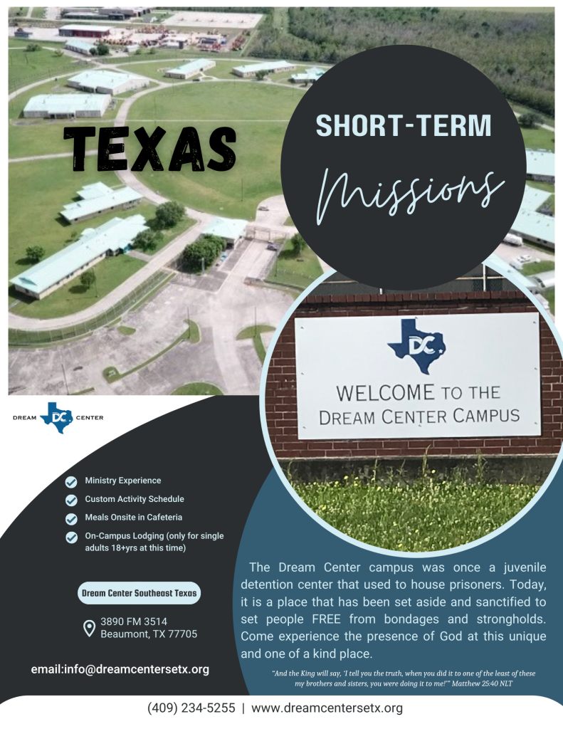 Is God stirring your heart for missions? You don’t have to go overseas to answer the call, the mission field is right here at home. At the Dream Center of Southeast Texas, you can step into short-term missions that make a real impact in our own communities. Whether you can serve for a weekend, a week, or even a couple of weeks, we’ll help tailor an experience that fits your availability and calling. Come be the hands and feet of Jesus. Reach out to our Short-Term Missions Director to customize your trip today.